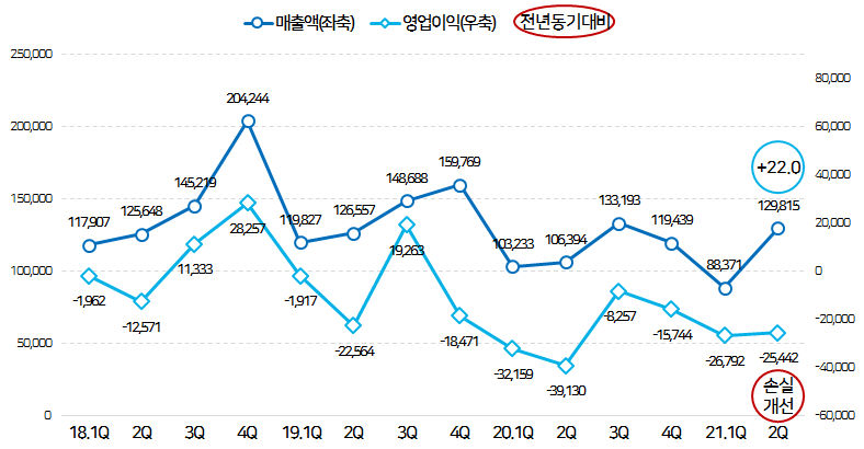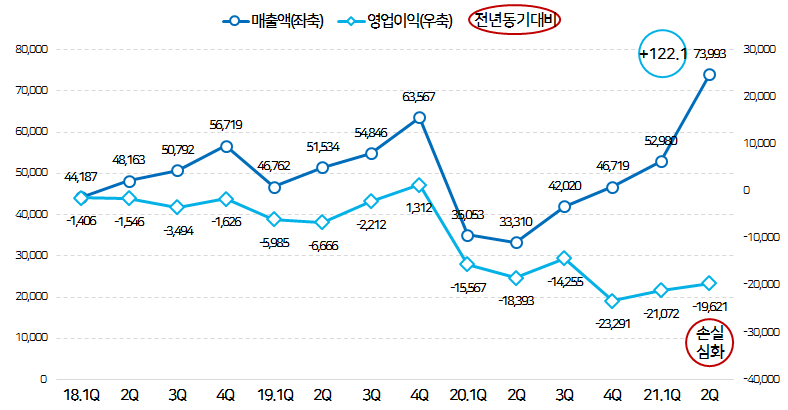 다만 2분기 연속 영업손실의 폭이 커지고 있는 점은 안타까운 포인트네요.