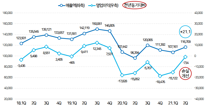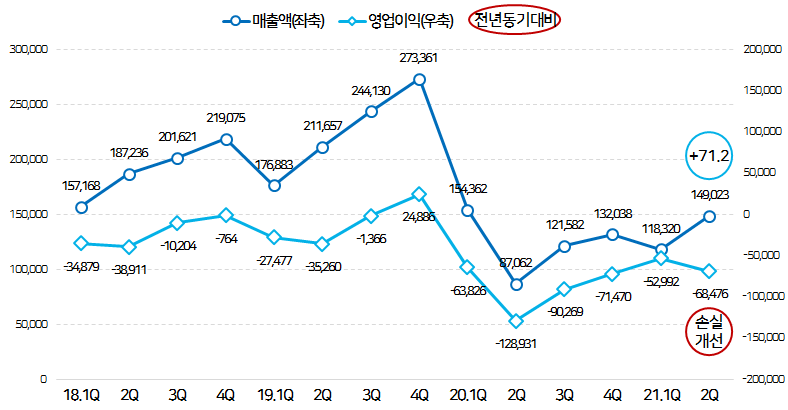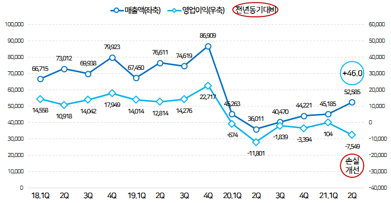 매출액은 코로나19 이전인 2019년 2분기를 넘어섰지만,