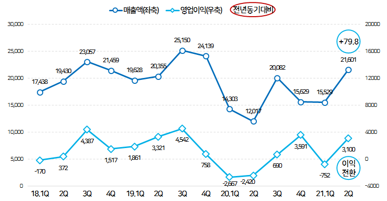 이번 분기부터는 지난해 코로나19의 영향을 직접적으로 받았던 2분기와의 비교가 이뤄지고 있는지라 매출액은 대체로 개선이 이뤄집니다.
