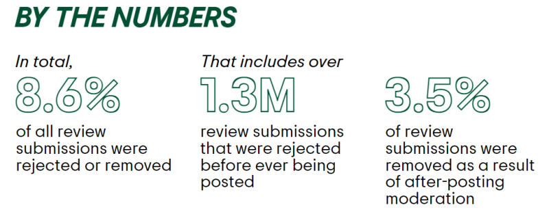 우선 전체 리뷰의 8.6%가 거절되거나 삭제된다고 합니다.