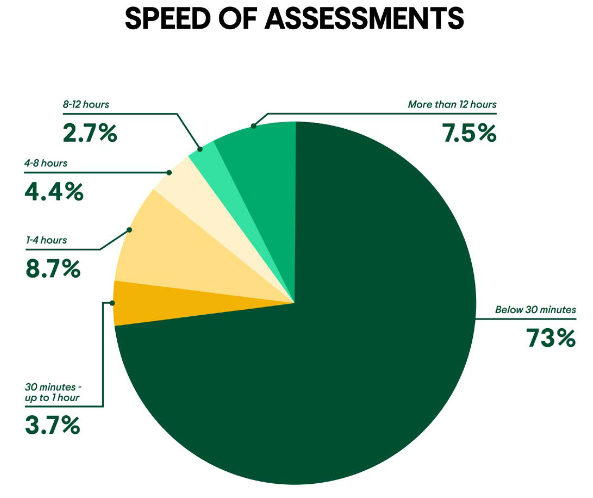 30분 이내에 처리되는 경우가 73%로 가장 많았습니다.