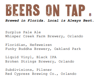 시그니처는 'Surplus'로 Floridian honey citrus ale 종류라고 하네요. 아래 메뉴에 첫번째로 보이시죠? 한 잔에 8달러(9,000원 수준)인듯 하네요.