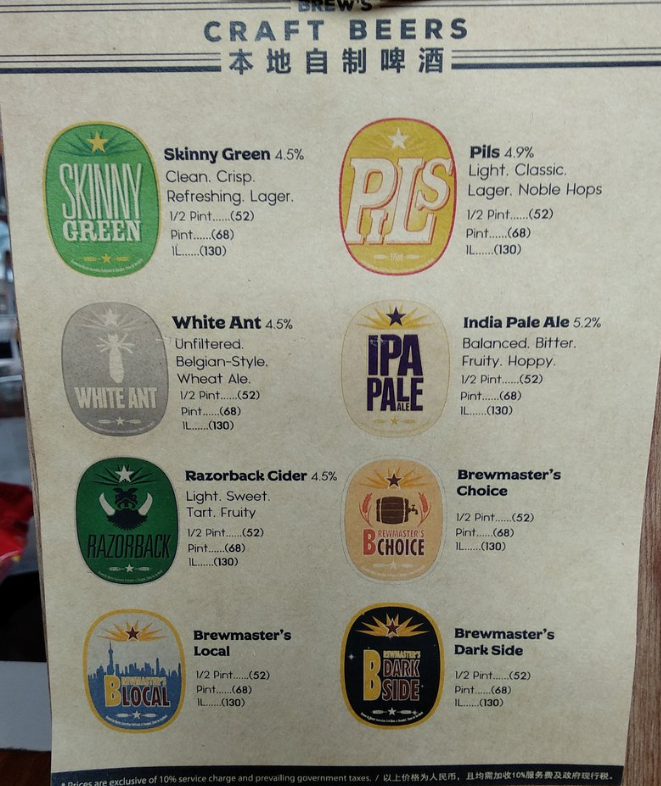 최근에는 비어 타워(Beer Tower)를 설치했다고 하는데, 여기에서는 자몽, 오렌지, 레몬과 같은 과일이 첨가된 맥주를 제조하나 봅니다. 대략 1파인트에 68위안(12,000원 정도) 정도인듯 하네요.