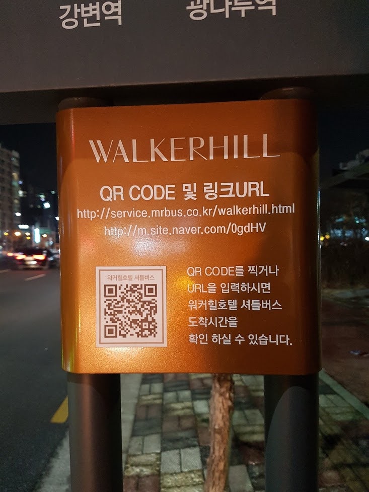 각 정류장 마다 QR코드가 있어서 QR코드를 스캔하면 위치확인 인터넷 창이 뜨게 되는 방식이지요.
