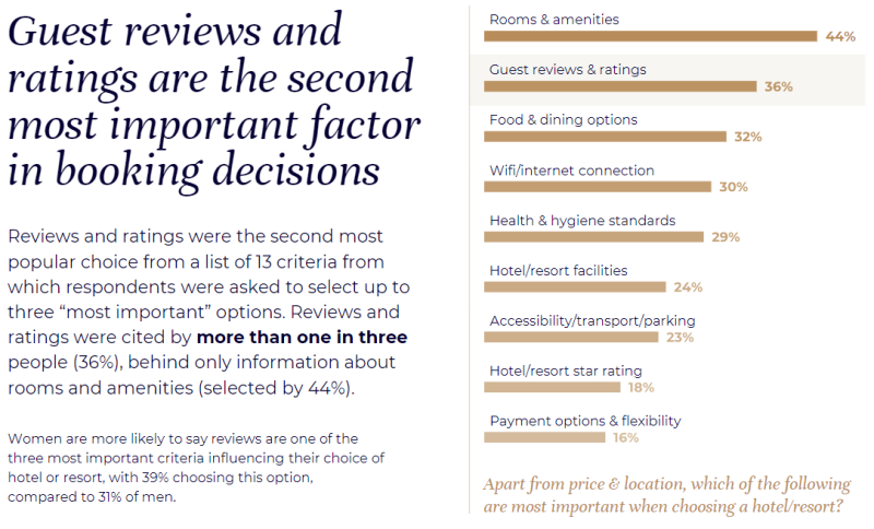 리뷰와 평점은 객실 및 편의시설 다음으로 예약을 결정하는데 중요한 요소였습니다.