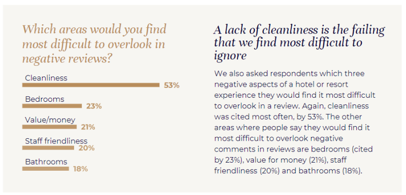 청결도가 리뷰 내용 중 가장 중요한 항목이라고 응답한 고객은 1/2 이상이었습니다.