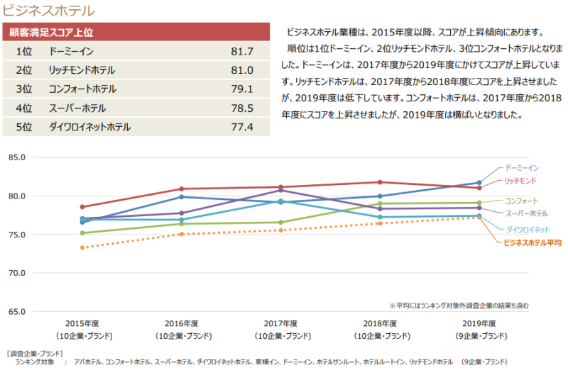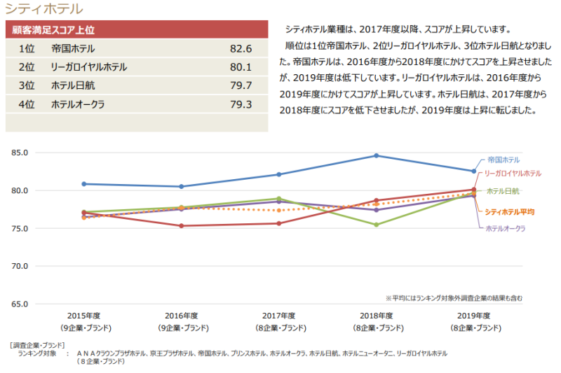 2019년 JCSI(Japan Customer Satisfaction Index) 결과 일본 호텔 고객만족도 순위