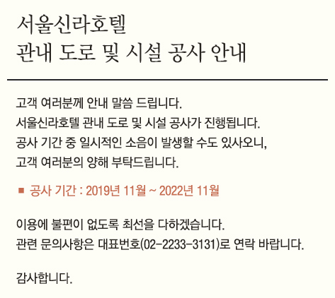 신라호텔 역시 한옥호텔 건설 및 면세점 위치 이동으로 22년까지 꾸준히 공사가 있을 예정입니다.