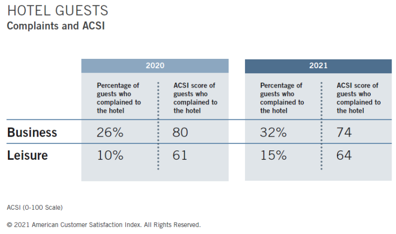 업무 차 호텔을 방문한 고객과 여가 차원에서 방문한 고객 모두 불평률이 상승했습니다.