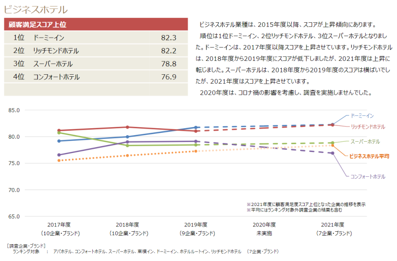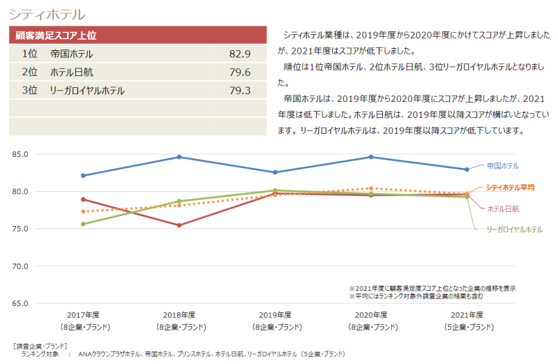 2021년 JCSI(Japan Customer Satisfaction Index) 결과 일본 호텔 고객만족도 순위