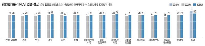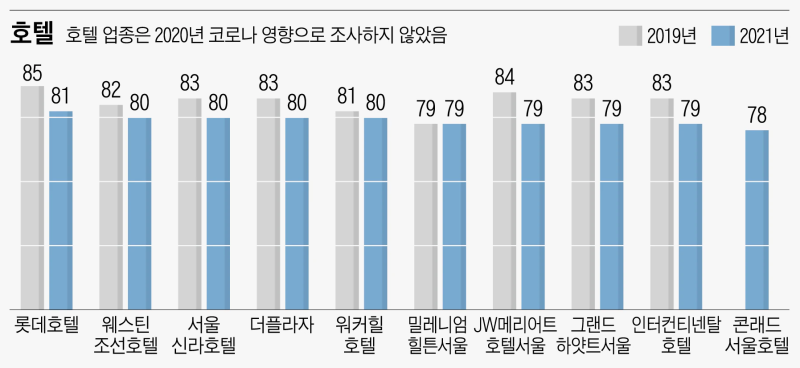 2021년 NCSI(국가고객만족도) 결과 국내 호텔 고객만족도 순위