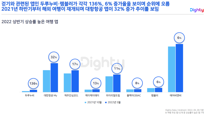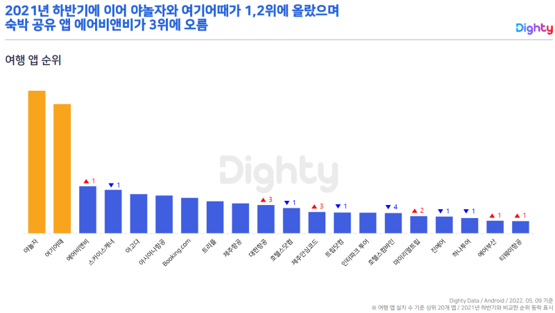 얼마 전 다이티 데이터 마켓에서 2022년 상반기 여행산업 앱 트렌드 리포트가 나왔습니다.