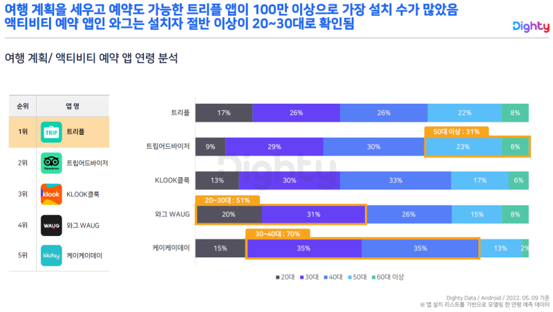 5. 여행 계획/액티비티 예약 앱 설치 분석