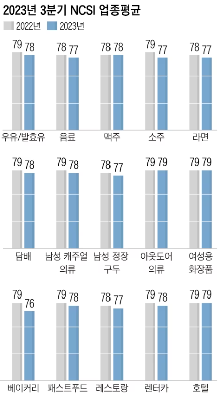 지난 주 NCSI(National Customer Satisfaction Index; 국가고객만족도) 결과가 발표되었습니다.