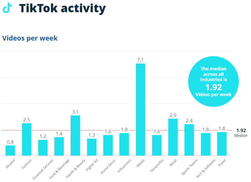 틱톡의 주 당 비디오 수 중앙값은 1.92개 였습니다.