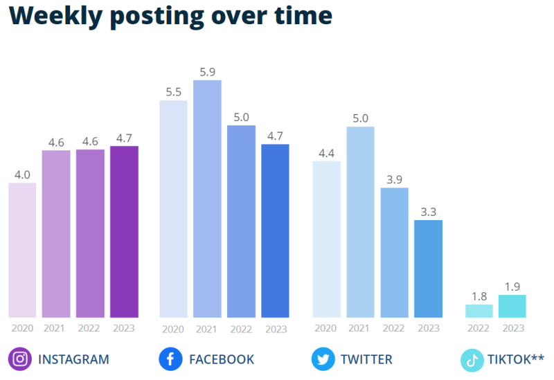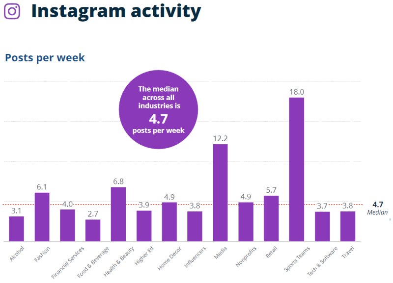 인스타그램의 주당 포스팅 수 중앙값은 4.7개였습니다.