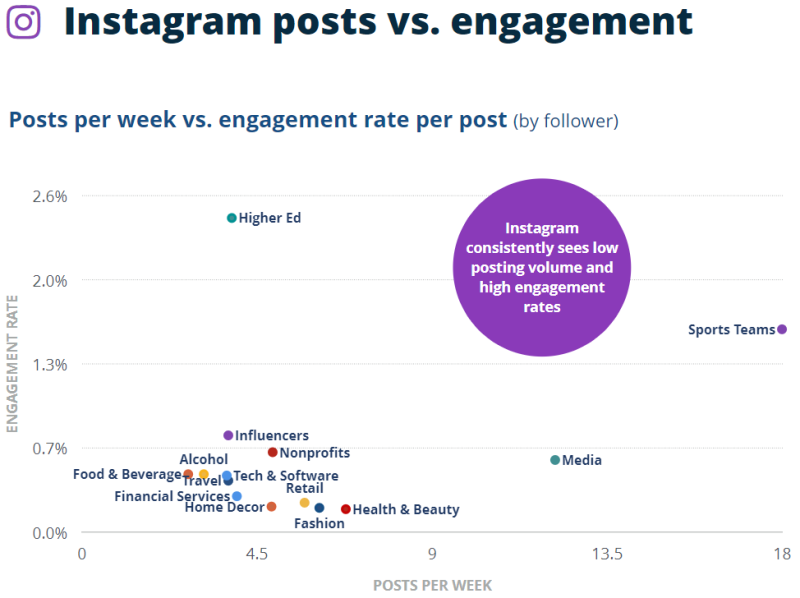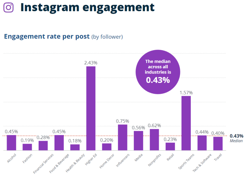 포스팅 당 참여율의 산업 중앙값은 0.43%로 페이스북에 비해 매우 높은 참여율을 보였습니다.