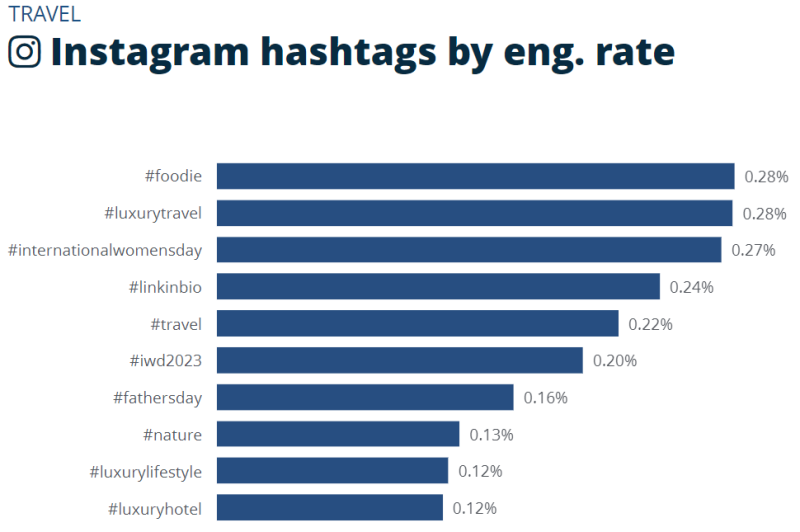 음식, 럭셔리 여행 관련 해시태그의 참여율이 높았습니다.