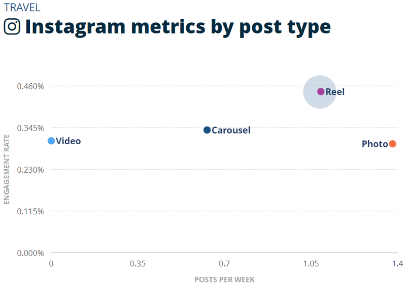 여행업은 상대적으로 적은 비디오로 많은 반응을 이끌어내고 있는 것으로 분석되었습니다.