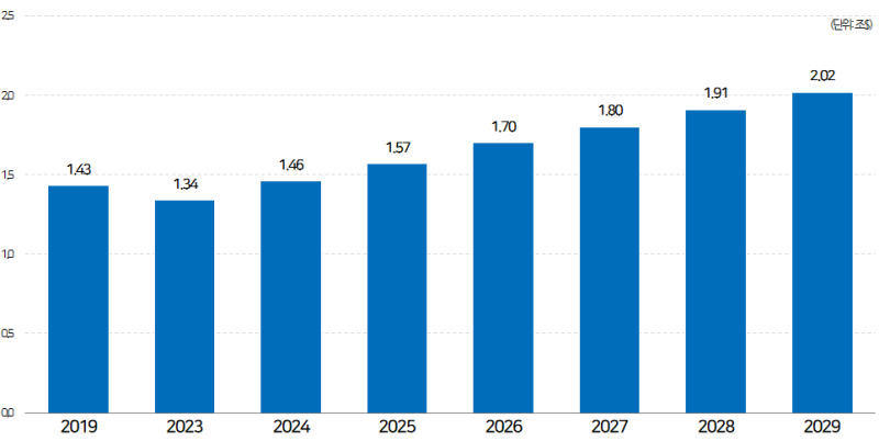 2조 달러 돌파 시점은 기존(2024년) 예측보다 1년 늦은 2029년으로 밀려났습니다.