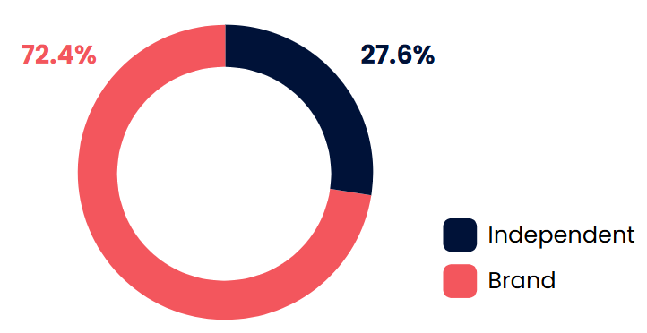 브랜드 호텔들이 평균적으로 4.43%포인트 더 높은 가시성 점수를 기록했어요.