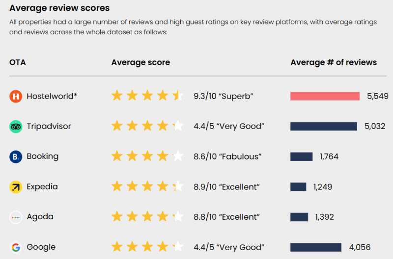 특히 호스텔월드, 트립어드바이저, 구글은 많은 리뷰를 확보하고 있었습니다.