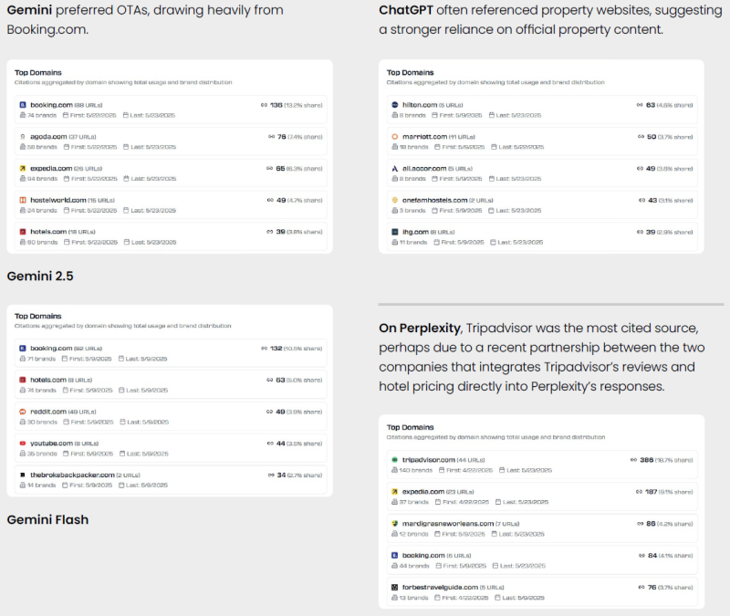 제미나이는 부킹닷컴에 많이 의존하는 모양새입니다.