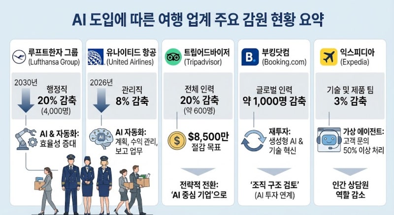 오늘은 각종 기사에서 나온 AI가 촉발한 여행 업계의 구조조정 현황과