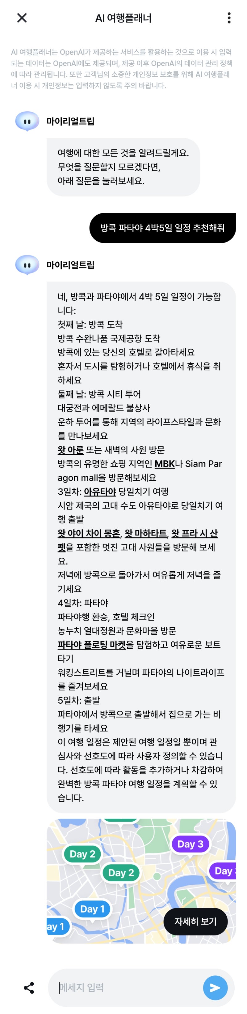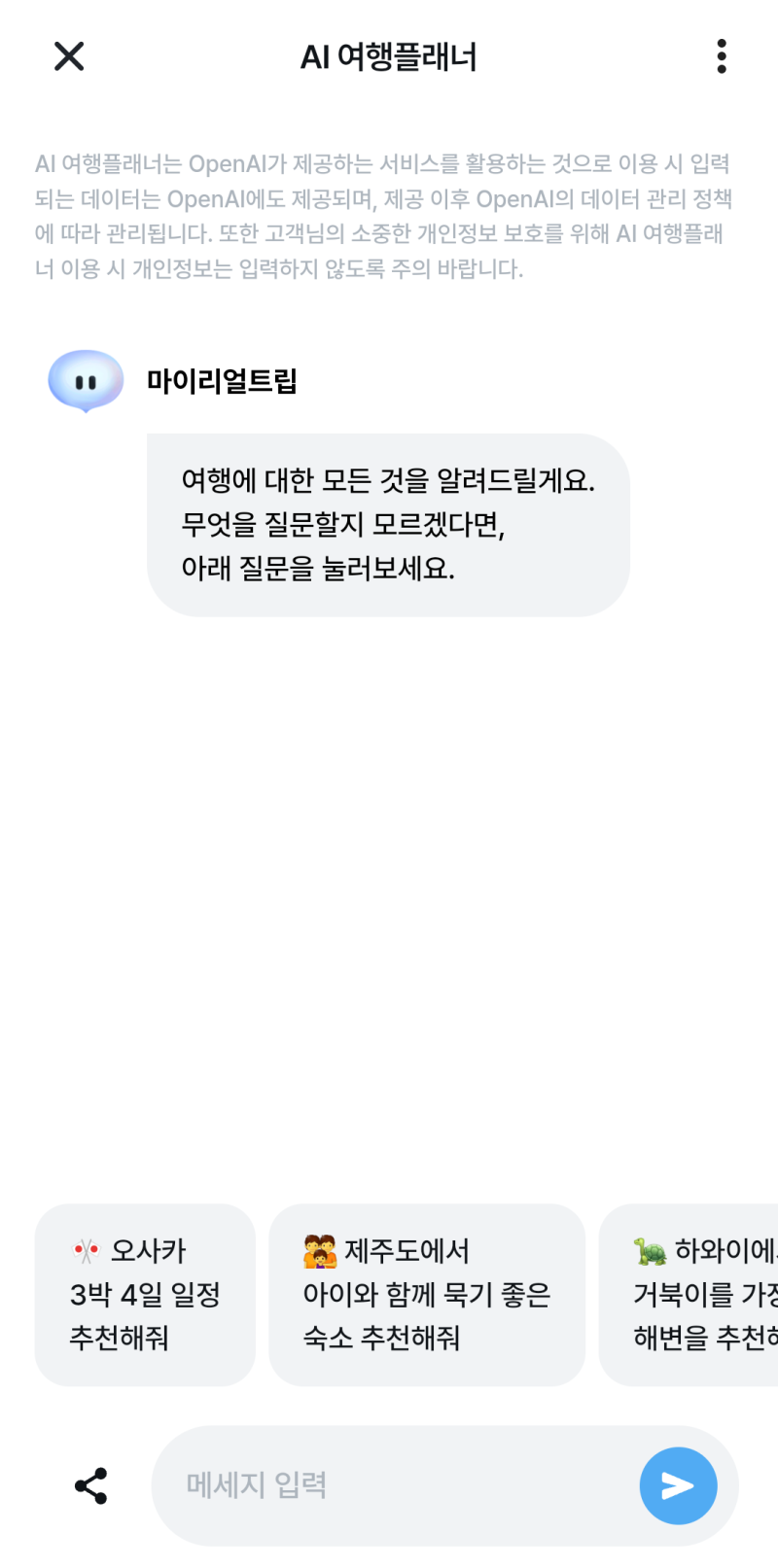 마이리얼트립, 챗GPT 연동 'AI 여행플래너' 출시