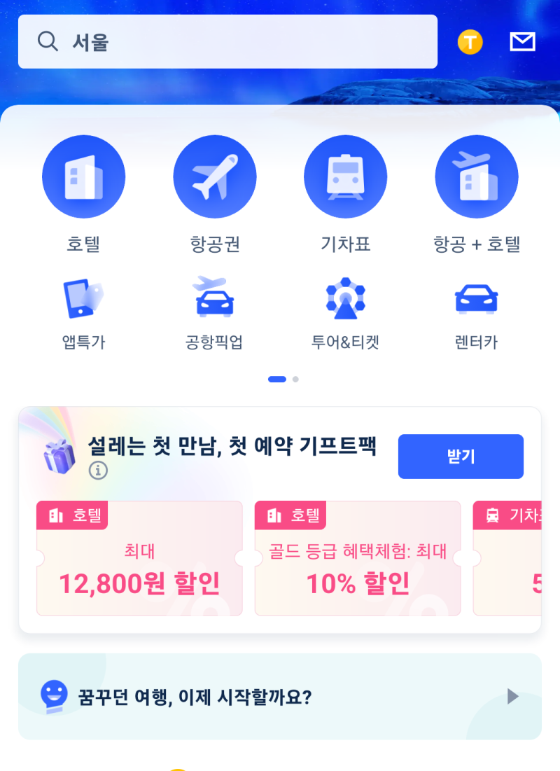 위 사진의 가장 하단을 보시면 "꿈꾸던 여행 이제 시작할까요?" 라는 문구가 보이는데요.