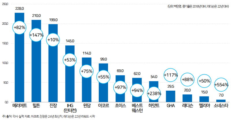 1위는 메리어트로 18년 대비 82% 증가한 2.28억명이었습니다.