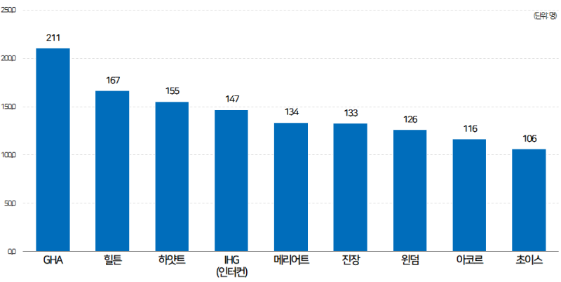 그래서 객실 당 167명인 힐튼이 실질적인 1위라고 보시면 됩니다.