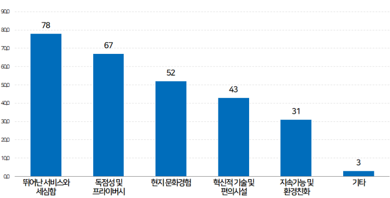 그 뒤를 이어 이 호텔만이 제공할 수 있는 독점적인 컨텐츠와 프라이버시(67%)가 두 번째로 중요한 요소로 꼽혔습니다.