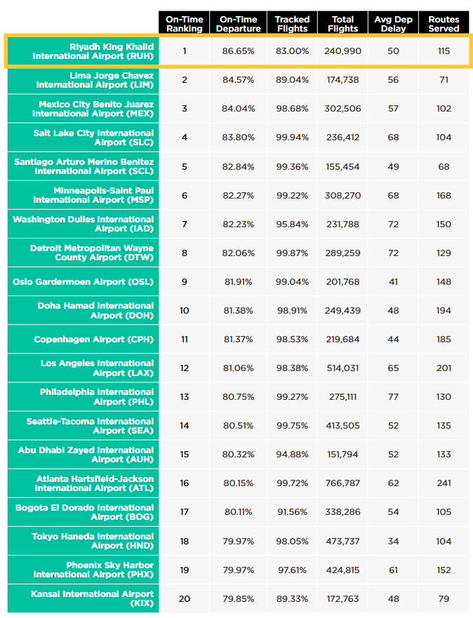 전세계에서 정시성이 가장 높은 공항은 사우디의 리야드 공항이었습니다.