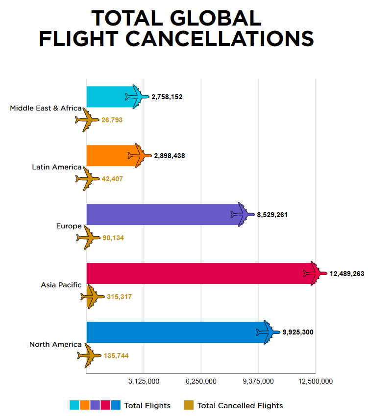 지난해 항공편 취소가 가장 많았던 지역은 아시아 태평양지역이었습니다.