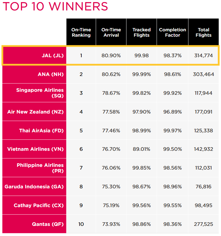 아시아 태평양 지역에 한정해서 보면 JAL 일본항공이 1위를 차지했습니다.