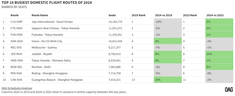 24년 가장 많은 좌석이 오간 국내선은 우리나라의 김포-제주 노선이었습니다.