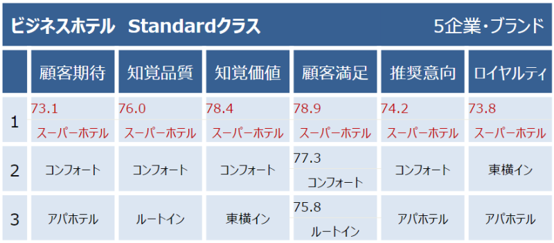 스탠다드에서는 슈퍼호텔 모든 요인에서 가장 높은 순위를 보였습니다.