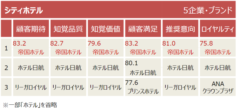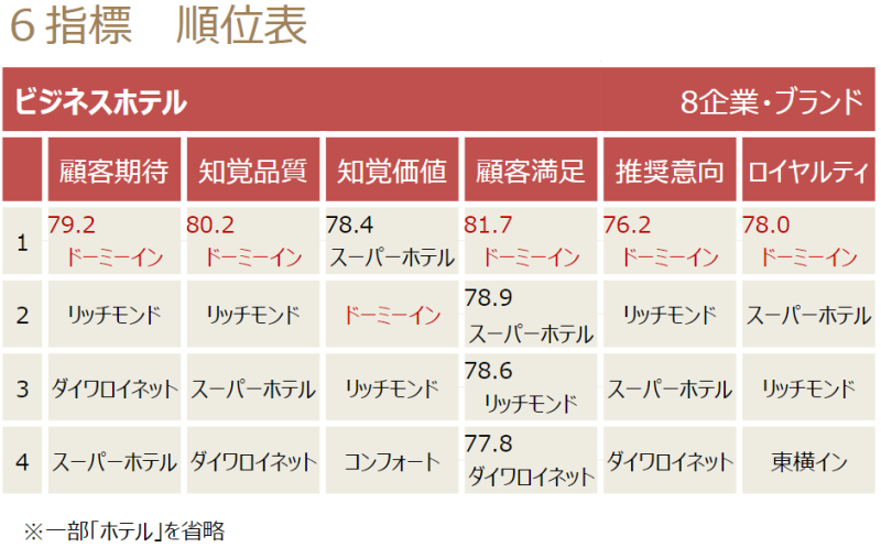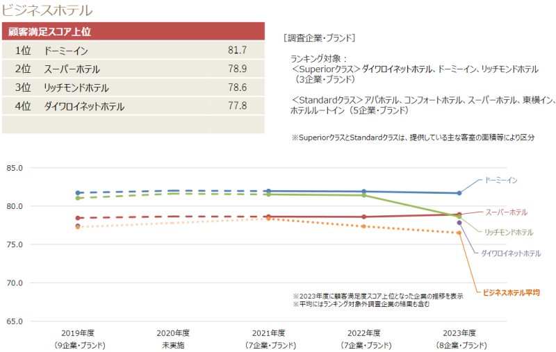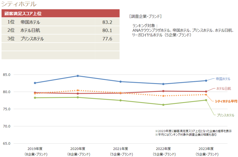 JCSI(Japan Customer Satisfaction Index) 결과 일본 호텔 고객만족도 순위(2023년)