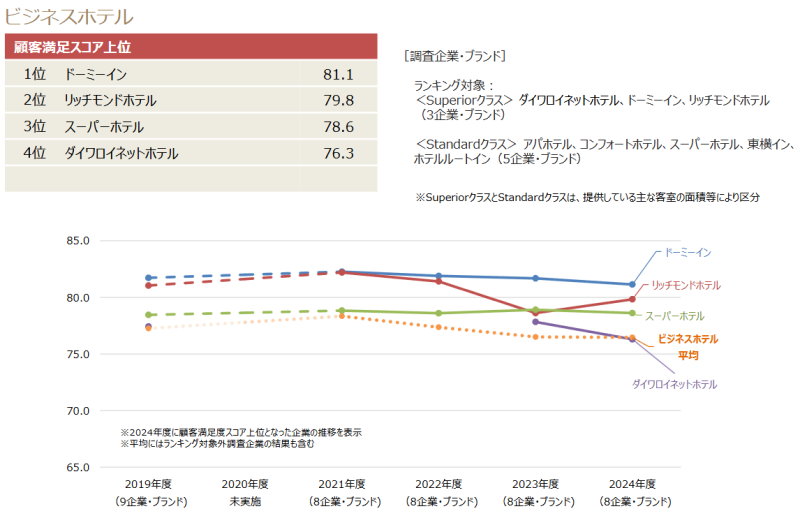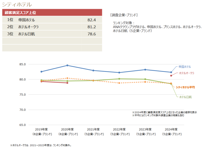 JCSI(Japan Customer Satisfaction Index) 결과 일본 호텔 고객만족도 순위(2024년)
