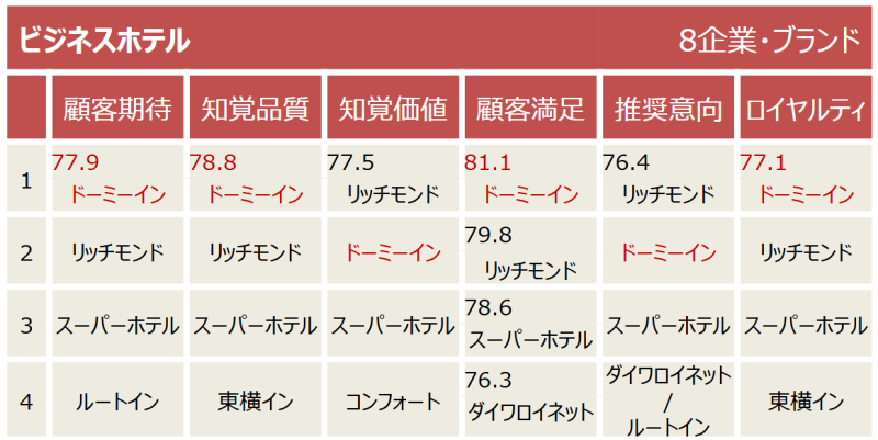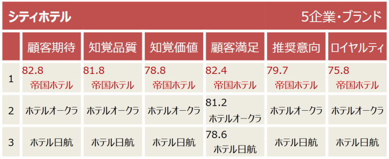 JCSI(Japan Customer Satisfaction Index) 결과 일본 호텔 고객만족도 순위(2023년)