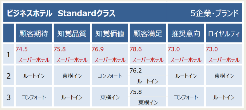 스탠다드에서는 슈퍼호텔 모든 요인에서 가장 높은 순위를 보였습니다.