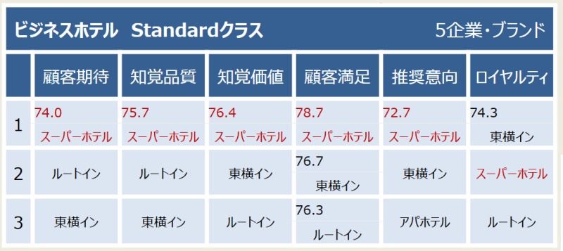 스탠다드에서는 슈퍼호텔 거의 모든 요인에서 가장 높은 순위를 보였습니다.