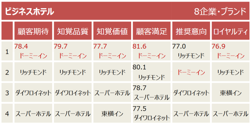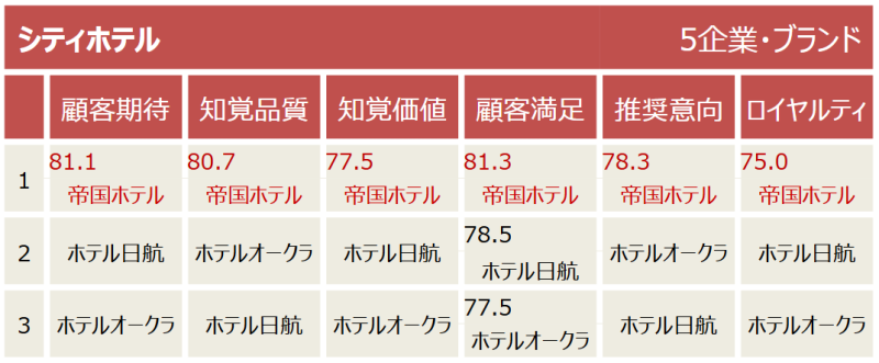 JCSI(Japan Customer Satisfaction Index) 결과 일본 호텔 고객만족도 순위(2024년)