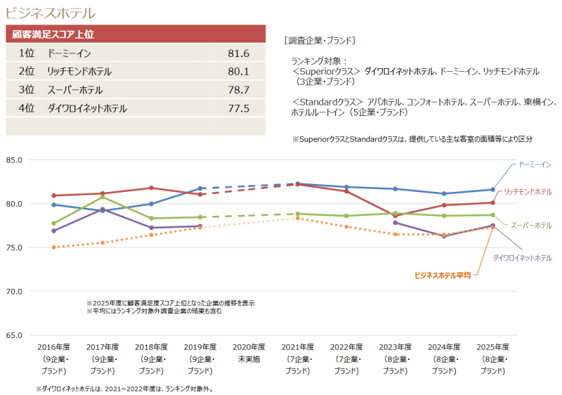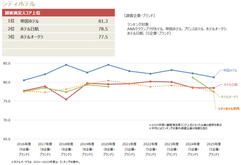 JCSI(Japan Customer Satisfaction Index) 결과 일본 호텔 고객만족도 순위(2025년)