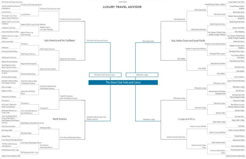 2021년과 2022년에는 연속으로 영국령 터크스 케이커스 제도의 The Shore Club Turks and Caicos(더 쇼어 클럽)가 선정되었습니다.