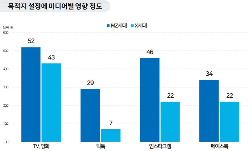 아멕스의 조사에 따르면 각 미디어가 여행 목적지 설정에 미치는 영향이
