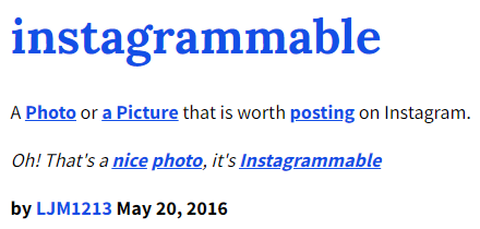 이러한 것을 보면 몇 년전 한창 인기를 끌었던 단어인 'Instagammable'과 유사합니다만,