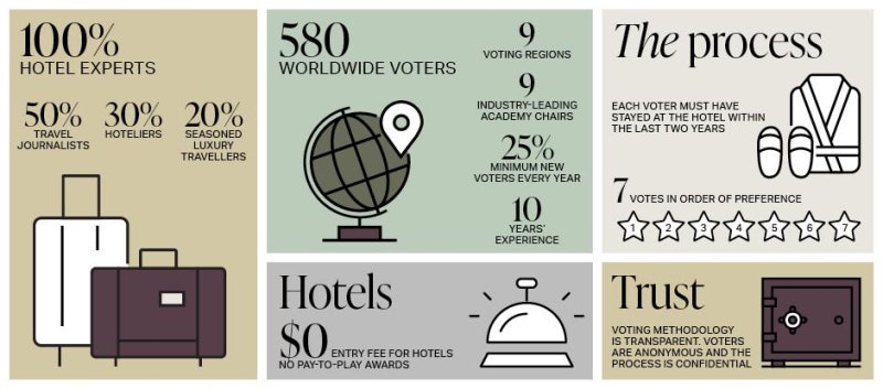 평가는 50%의 여행 저널리스트, 30%의 호텔리어, 20%의 럭셔리 여행자를 대상으로 이뤄진